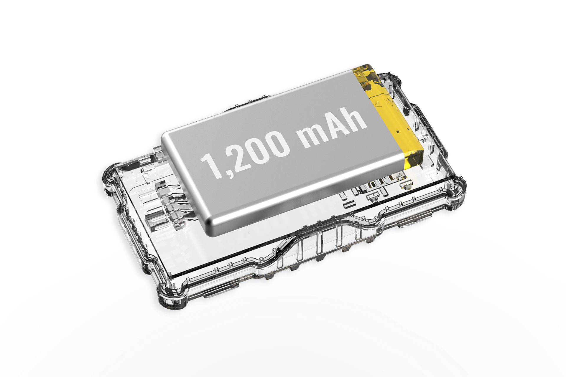 Large-capacity 1,200 mAh Li-ion internal backup battery for extended device operation time